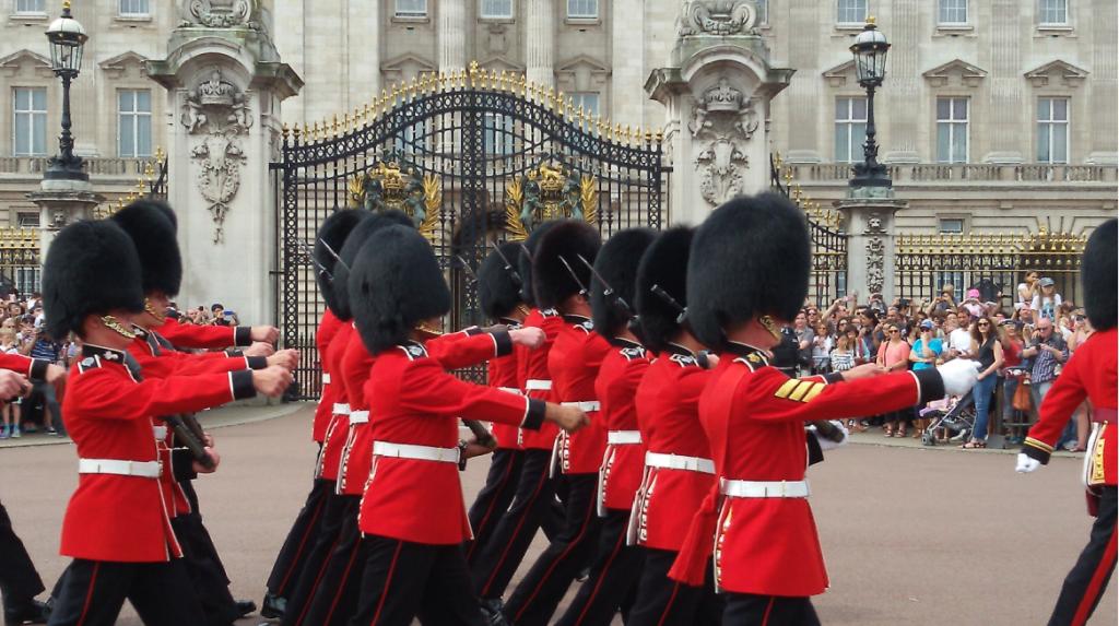 那么接下来的游览,更是让我激动不已。为了让大家能够有机会了解英国的历史文化、感受伦敦作为英国政治文化中心的城市氛围,丁老师首先带领我们观看了伦敦白金汉宫的皇家卫队交接仪式。上午1130分,仪式开始,头戴黑熊皮帽、身着正红上衣的皇家卫队步伐铿锵,整个换岗仪式秩序井然、威严庄重,从中可以感受到历史悠久的大英帝国对传统制度的沿袭。好似天安门的升旗仪式,这个仪式也带有象征着国家威仪的意味。