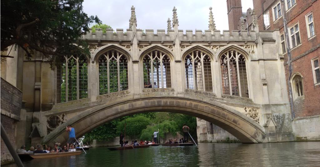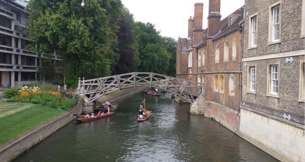 如果说伦敦的那几所大学带有更多城市感,那么剑桥大学就是田园派的杰出代表。剑桥是“城市中有大学”,分布式地坐落在小镇中的各个学院的庭院、建筑大都依傍着剑河,我们有幸能够乘小船在剑河中徜徉,“撑一支长篙,向青草更青处漫溯”,热情友好的船夫小哥一边为我们悠悠地撑船,一边向我们介绍缓缓迎来的沿途风景:牛顿的数学桥、国王学院、叹息桥、圣约翰学院……一路上,不时地有悠然自得的野鸭游过,仿佛这条河是它们的,还有弹着吉他唱着歌的船客,坐在河边不知是思考还是发呆的游人,优美的自然风光让一切都变得和谐融洽而令人陶醉,我不禁喃喃道:“在康河的柔波里,我甘心做一条水草”!