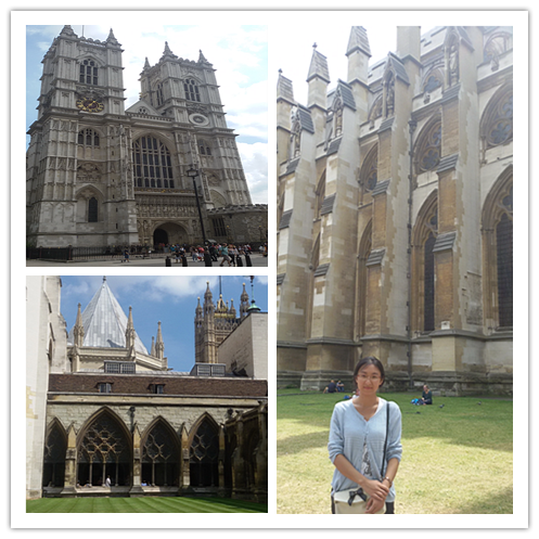 Westminster Abbey果然名不虚传,这座宏伟的建筑壮观宁静,步入其中,眼之所见、目之所及,无不让我深感折服,心存敬畏——这里安葬着英国过去一千年历史中的多位名人,陵墓和纪念碑诉说着人类的尊严与成就,唱坛中的颂唱赞颂着上帝的荣耀与光辉。威斯敏斯特教堂是一个活着的教堂,至今仍提供礼拜服务。记得在那拱形穹顶下,我驻足良久,建筑与宗教、历史、文化水乳交融的魅力,击中了我的灵魂;在诗人角,我徜徉在思绪的海洋,这里有我所熟悉的伟大诗人的名字和印记,看着它们,每一个都让我痴痴地出神,都像是与他们携手历经了一段或是风雨交加、让人热血沸腾,或是宁和静谧、令人忖思沉想的旅程;在修建齐整、绿意盎然的草坪旁,明媚和煦的阳光轻抚在脸上,可爱的鸽子优雅闲散地漫步在身边,顿时感到一切的美好,都环抱着自己,宁静地反思片刻,整颗心都亮了。