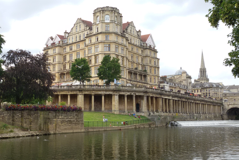 之所以取这个小标题,是因为在我看来,巴斯实在是我见过的这几所城市中最具风情的了。如果剑桥的田园风光尚且存留一丝学术精英阶层的疏离感,那么巴斯的自然风景绝对够乡村、够亲切,好像与各个阶层的人都能互动。这个迷人精致、一眼即能望得到边的小城,被丝毫未经人工雕饰的小山环抱着,我刚一来到巴斯,就觉得这定会是另一番天地。