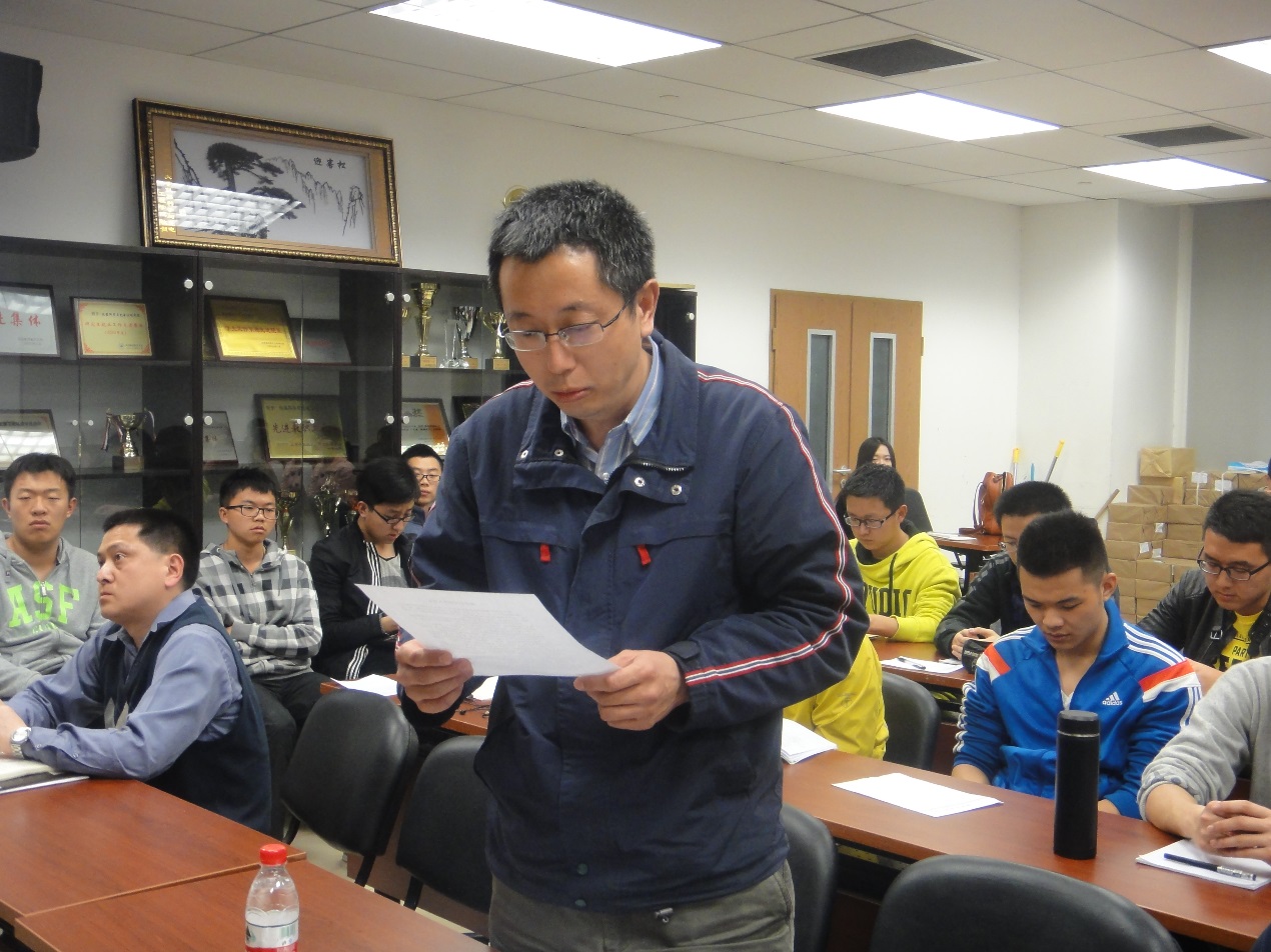 329日晚,1217党支部召开了拟发展对象答辩会,从21名重点考察对象中选拔本学期的拟发展对象。教工党员胡朝晖老师、祝世平老师、党支部书记李鹏辅导员,以及党支部的全体党员和预备党员参加了本次会议。
