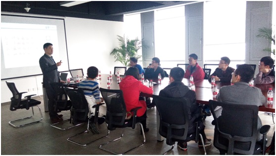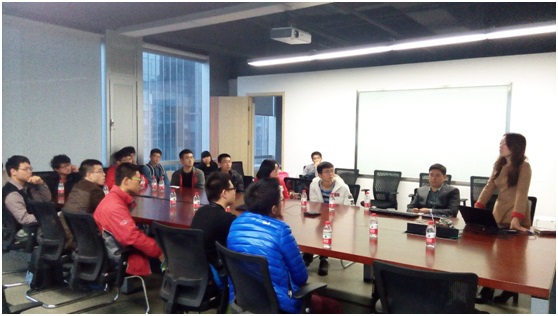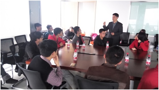 下午230分,仪光企校师生来到北航致真大厦展讯通信有限公司,朱胜利总监亲自到门口迎接,作为公司高管,朱总在百忙之中牺牲自己的休息时间来接待仪光企校的参访,让大家感动不已。在会议室里,朱总以什么是芯片、同学们创业打算做什么为题,先与大家进行了简短的交流,然后从公司、产品、市场、发展四个部分,详细向大家介绍了展讯的发展历程和创业中艰辛而又令人骄傲的故事,帮助大家更好地了解展讯。