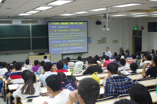 开班仪式结束后,思想政治理论学院高宁老师为求实党校学员讲授题为《谈谈学习党章 学习系列讲话的方法》的第一课。高宁老师主要从党章党规与系列讲话的关系、“道术相济”——学习党章的方法和“读本+原著”——学习系列讲话的方法这三个部分进行讲解。高宁老师通过当下我们正在进行中的“两学一做”学习教育引入主题,从实践上升到理论,从当代的党章回顾往日历程等,为我们讲述了学习党章的方法和重要性。随后高宁老师与我们分享了部分习近平总书记的讲话内容及其精髓之处,并对习近平总书记的个人成长、工作上的思考进行了解读,并从中总结出对当代青年学习、工作和生活的启示。在讲授过程中,高宁老师轻松幽默的互动、严谨流畅的逻辑、信手拈来的案例无不令党支书们折服,获得了参会师生的一致好评。