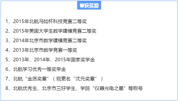 2012年,她怀揣着为祖国航空航天事业做贡献的远大理想,来到北航。几年来,一代代北航人努力拼搏的精神,教给了她什么才是真正的爱国,教给了她应该以什么样的态度对待科研,教给了她如何坚守自己的梦想!在学习上,她一直保持着严谨认真的态度和勤奋刻苦的精神,三年平均分及综合排名均列大班第一名(1/170),以面试成绩第一保送直接攻读博士学位,她的毕业设计《核磁共振陀螺光学系统误差分析与小型化设计》也被推选为学院三篇优秀毕业设计论文之一。