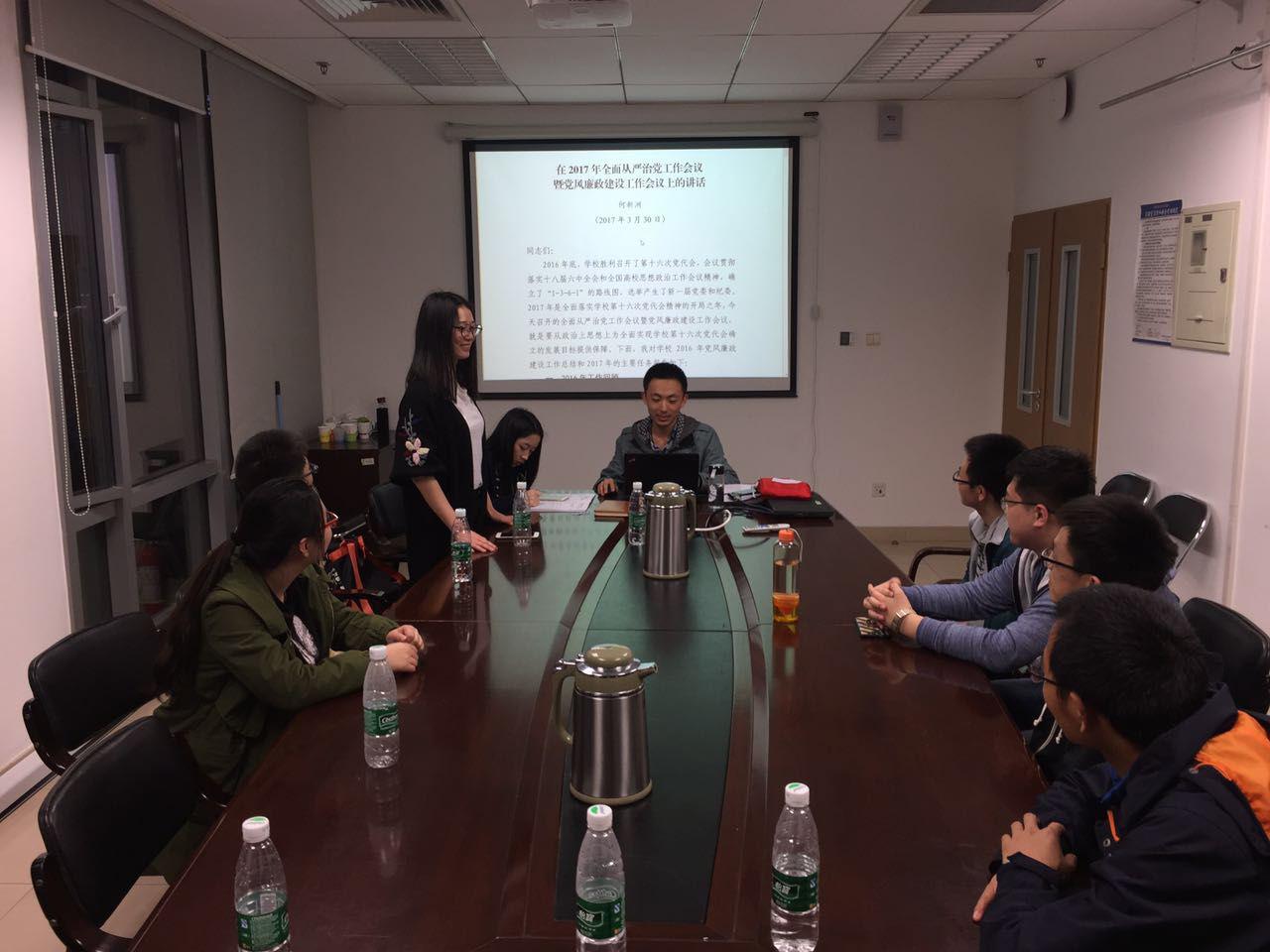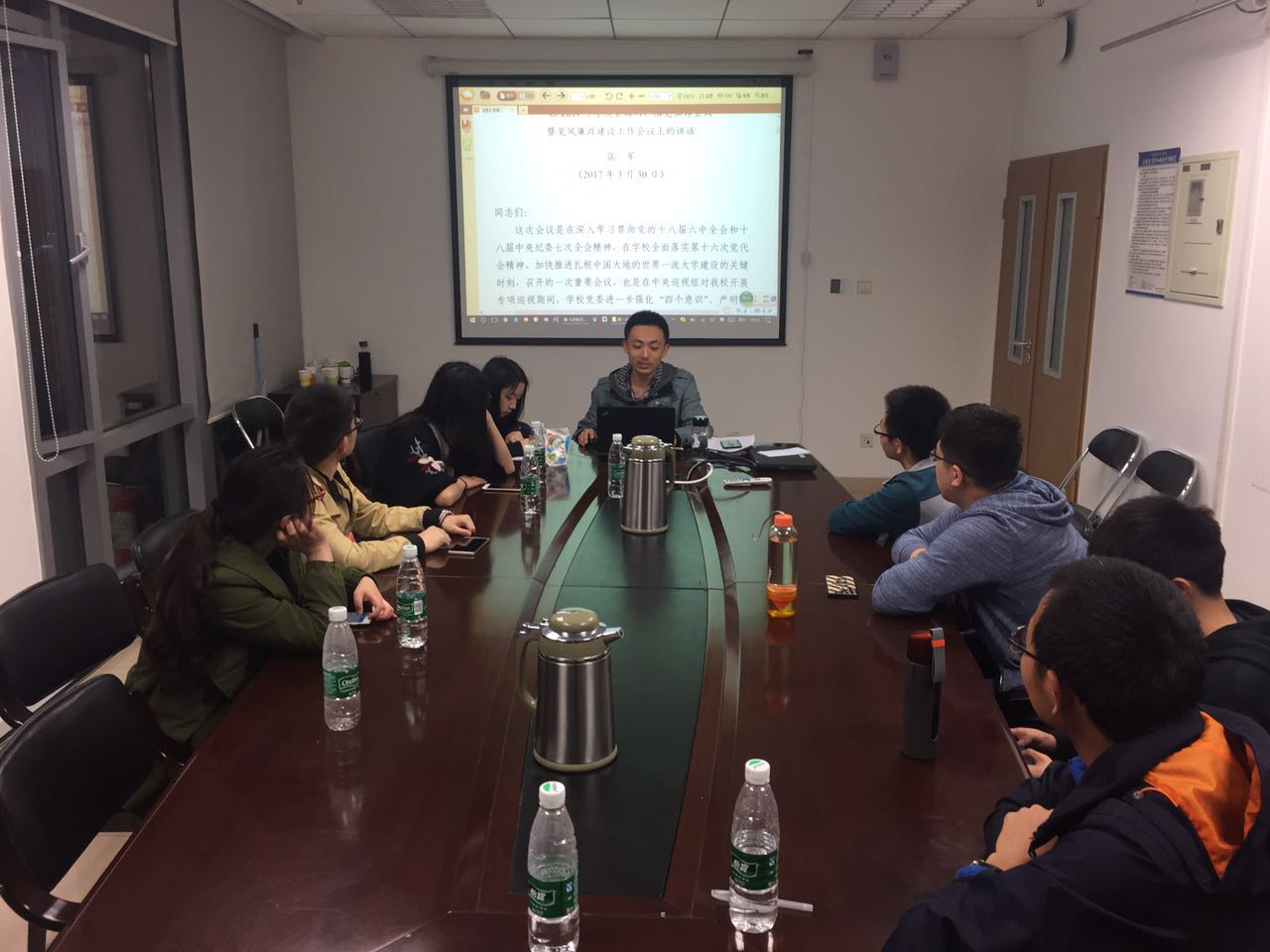 2017年4月7日晚,为贯彻学习全面从严治党暨党风廉政建设工作会议上张军和何新洲同志的讲话精神,16级遥感党支部在新主楼b828会议室召开了党员学习大会,会议由支部书记侯烨主持。