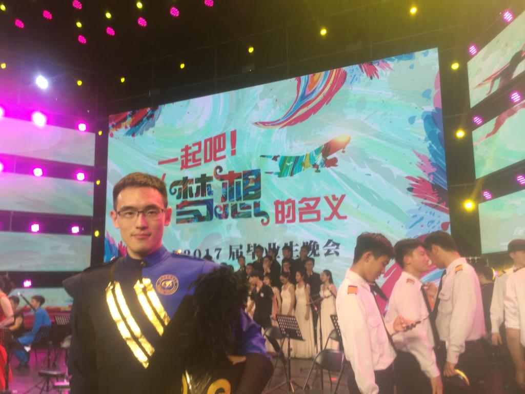 学院2017届毕业生史天阔作为晚会主持人,在舞台上化身本次梦想航班的“机长”,带领全体毕业生度过了一场难忘的梦想之旅。晚会最后,在北航校交响乐团、校合唱团、校舞蹈团的合作演绎下,史天阔为观众献上了他为纪念北航创校人之一林士谔先生,弘扬“陀螺精神”,创作的歌曲《永恒》。昂扬向上的歌词,优美动听的旋律,将观众们深深感染。