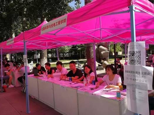 12日清晨,当大多同学还在睡梦中时,学院2017级研究生辅导员孔令海、博士生辅导员石迪已带领迎新工作者们开始了一天的忙碌。研究生手册、学生卡、迎新手册……一袋袋的物资在众多迎新工作者的共同努力搬运下,迎着清晨的阳光,整齐且有序地放在了图书馆前求实广场17系的迎新帐篷后方。粉色的迎新帐篷,整齐摆放的桌椅,饱含热情的迎新工作者,在求实广场前形成了一道亮丽风景线。