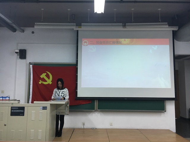 会议伊始,支部全体党员唱国际歌。随后,朱聪慧同志做了关于她这一年发展情况的汇报,指出了自己在考察期内的进步以及自身尚存的不足,并且表达了她加入共产党的意愿。