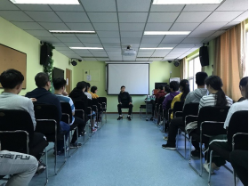接着,两个队的同学进行了默契上的大比拼。培训师让每个组的同学坐成一排,每位同学只能看见前面同学的后背。在不发出声音、不能往后看、不能肢体接触的情况下把信息从末尾最后一位同学传递到最前一位同学,信息传递正确的组别将胜出。该游戏考验了每个团队的沟通能力和团队合作精神。在传递信息的过程中,因为不能看也不能发出声音,大家遇到了很多困难,在游戏的过程中,两组同学反思遇到的问题,可能出现的信息等,集思广益,最终两组同学都传递了正确信息。