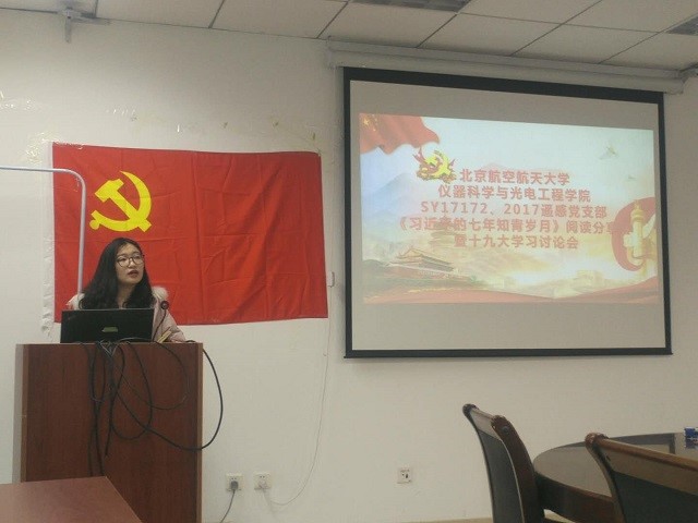 3月4日下午,仪器科学与光电工程学院SY17172党支部、 2017遥感党支部于新主楼B707召开《习近平的七年知青岁月》阅读分享暨十九大学习讨论会。会议由SY17172党支书王舒同志主持。