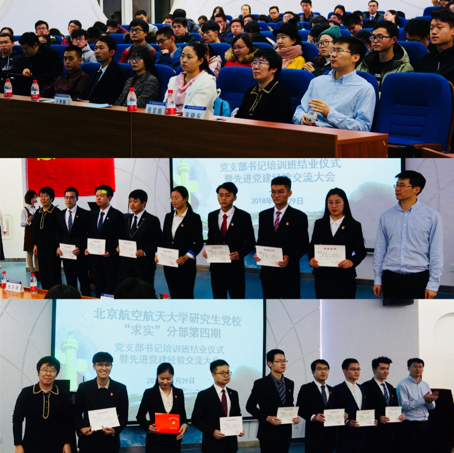 结业仪式后是先进党建经验交流活动。曾任交通学院SY17133党支部书记的高哈尔同志,与大家分享了将理论与实践相结合、做好支部工作的宝贵经验;可靠性与系统工程学院党建辅导员、硕士2016级第二党支部书记张明杰同志交流的主题是《办党员群众喜闻乐见的活动》,他结合丰富的案例阐释了如何提高站位、润物无声、打造“先进党支部”;生物与医学工程学院研究生“月宫一号”党支部曾获“五星党支部”等多项荣誉,现任党支部书记、校级宣讲团成员伊志豪同志向大家讲述了《矢志不渝月宫梦,空天报国我为先》的动人故事;仪器科学与光电工程学院前党建辅导员张天航同志以《无用的方法论》为题,结合自身经历生动诠释了如何管理党支部,她强调,要以人生的标准当好支部书记。在经验分享过程中,学员们纷纷提出了在实际工作中遇到的困难与困惑,四位优秀的党建工作者悉心解答,学员们收获颇丰、满载而归。