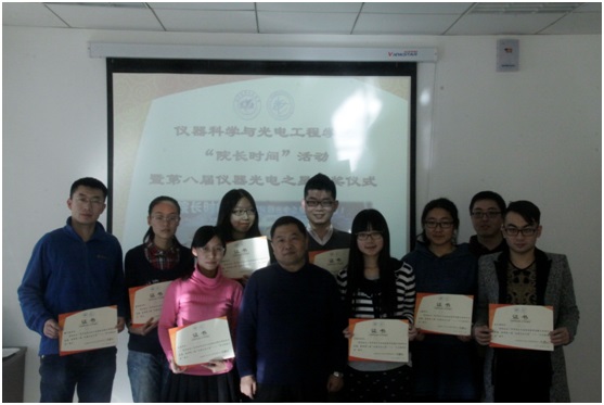 首先,房建成院长为9名获奖者依次颁发了证书,并表示了热烈的祝贺。他表示,看到仪器光电学子在专业学习、科技实践、社会工作以及艺术体育等方面取得如此傲人的成绩,他感到十分的欣慰与高兴,同时鼓励同学们再接再厉,为学校、学院做出更大的贡献!
