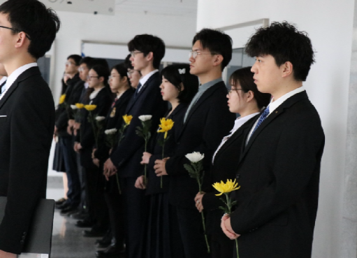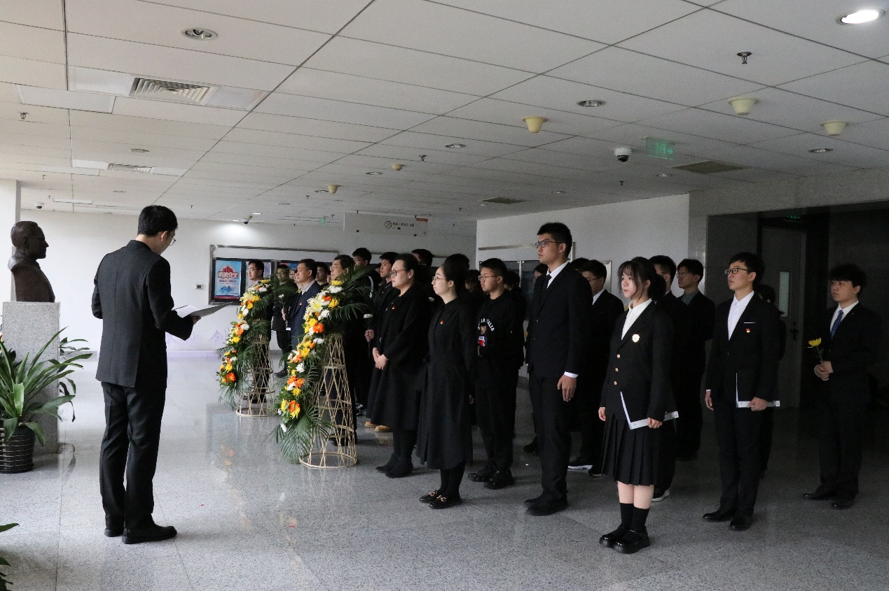 本次活动的参与者包括林先生的学生樊尚春老师、仪器科学与光电工程学院院长徐立军老师、士谔书院执行院长丁丁老师、仪器科学与光电工程学院团委书记李鹏老师、两院专职辅导员及40名优秀学子代表。师生代表身着黑色正装,庄严肃立,为林先生雕像献上花篮和鲜花,以表达对他的怀念之情。