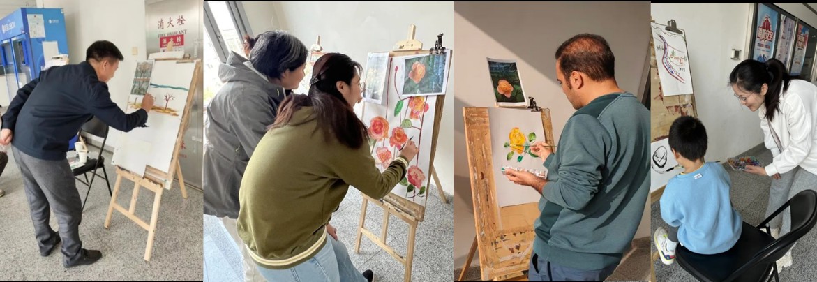 路过的老师们也积极地参与进来,专注地在纸面上留下一颗小树,或盛放的鲜花,或翠绿欲滴的枝叶。本次活动也吸引到了路过的留学生和小朋友。