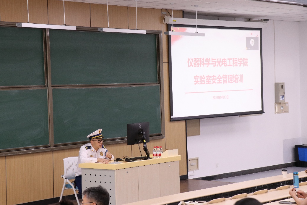 为进一步增强师生消防安全意识,普及消防安全知识,9月13日下午,仪器科学与光电工程学院实验室安全管理培训在学院路校区主M楼101教室成功举行。各系所安全员、各实验室安全负责人,以及新进研究生近200人线下参会,其他师生共100余人线上参会。