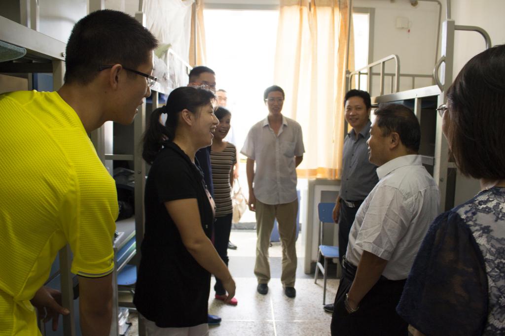 9月7日上午,校党委书记胡凌云,党委常务副书记张维维、副校长魏志敏等领导来到了迎新现场,对工作人员表达了亲切的慰问。仪器科学与光电工程学院学院院长房建成、党委书记赵慧洁也来到迎新现场慰问志愿者,并来到新生宿舍中看望刚刚报道的新生和学生家长们。领导们的关怀与肯定,如同夏日里凉爽的清风,伴随着我们顺利完成迎新工作。