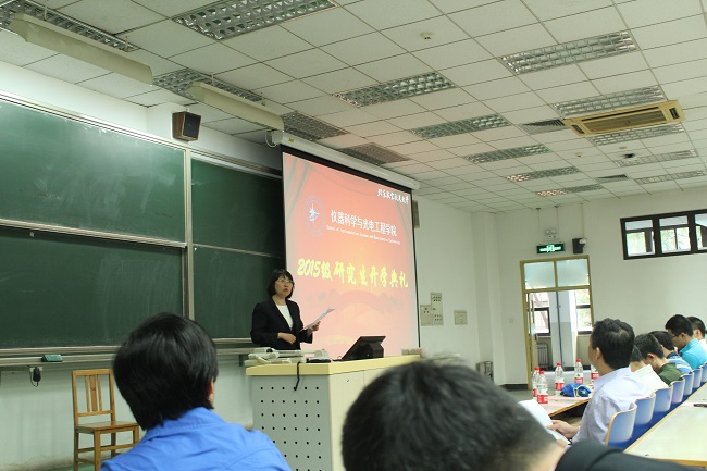 仪器科学与光电工程学院党委书记赵慧洁教授首先致辞,代表学院领导向新同学表示欢迎,并勉励同学们学有所成、学有所获。学院副院长徐立军教授致辞,叮嘱同学们在攻读研究生的过程中定要坚持信念开拓创新。随后,在校研究生代表、校研究生十佳孔令海同学代表学院所有在校研究生对新同学的到来表示了欢迎,对各位新同学即将到来的研究生生活表达了美好的祝愿。新生代表吴婕代表学院所有新生对即将到来的研究生学习展示了刻苦努力的决心,对丰富多彩的研究生生活表达了美好的憧憬。