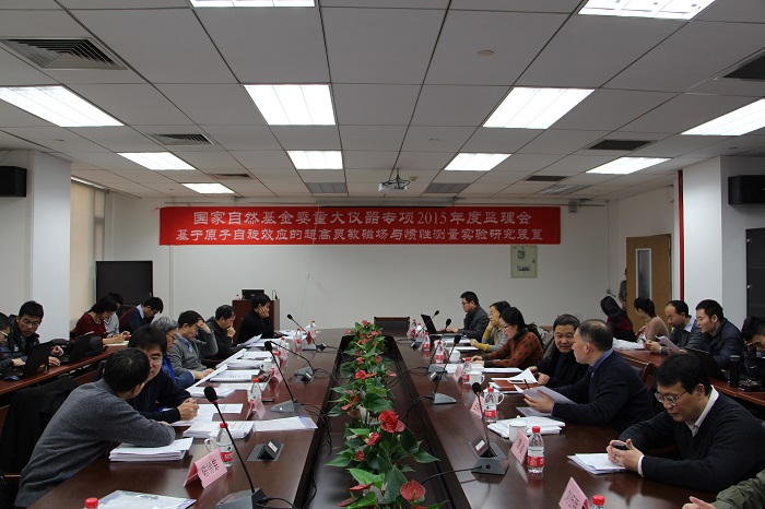 会上,房建成院士介绍了项目2015年度监理报告,汇报了项目“基于原子自旋效应的超高灵敏磁场与惯性测量实验研究装置”的任务目标及总体进展情况、财务情况、管理情况,以及下一步研究计划等。然后全伟副教授、袁珩副教授和胡朝晖博士,分别介绍了装置所涉及三个平台的具体研究进展。与会专家充分肯定了该项目进展以及取得的阶段性成果,一致认为该项目已圆满完成了任务书规定的中期检查的研究内容,并达到了中期检查规定的技术指标。专家们还就仪器研制工作以及项目研究过程中可能遇到的困难展开了深入的交流与讨论,为下一步项目的顺利开展,财务和组织管理提出了很好的建议。本次监理会的召开对该项目的顺利实施具有重要的指导意义。